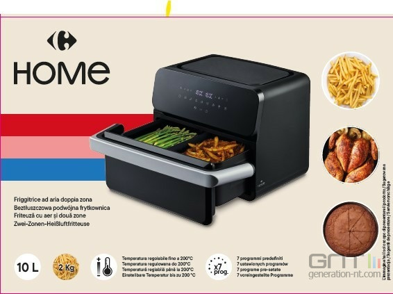 L'appareil visé est l'Air fryer 10L de Carrefour Home. Il est facilement identifiable grâce à ses références précises. Le modèle porte la mention HAF10LDU1700-25 et le code-barres (GTIN) 3616959381496. Ces informations sont inscrites directement sur l'emballage ainsi que sur la plaque d'identification du produit.