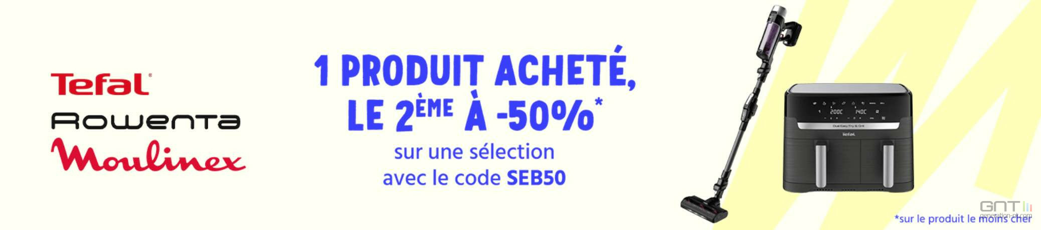 Cdiscount propose en ce moment une opération spéciale sur les marques Tefal, Rowenta et Moulinex : pour un article acheté, le 2ème est à -50 % (le moins cher des deux) avec le code SEB50.
