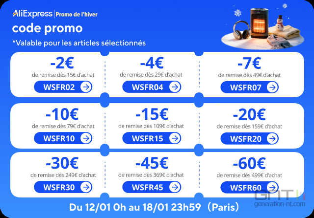 Jusqu'au 18/01 inclus, AliExpress lance sa Promo d'hiver avec des remises pouvant aller jusqu'à -60 % sur une large sélection de produits !