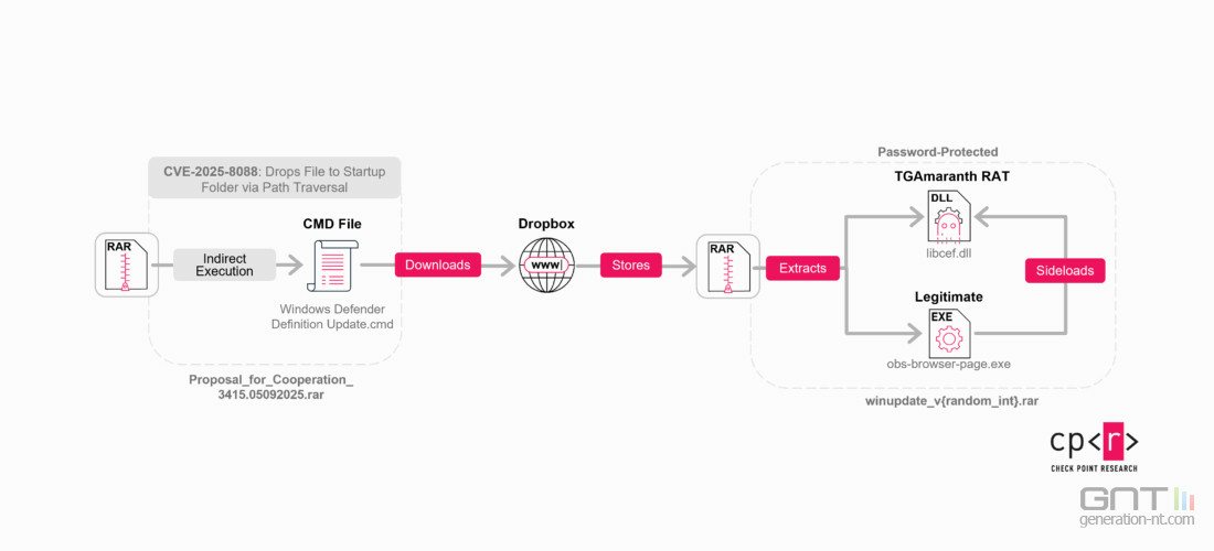 Son mode opératoire se distingue par une grande réactivité, dont l'exploitation de la faille de sécurité CVE-2025-8088 affectant WinRAR, moins de dix jours après sa divulgation.