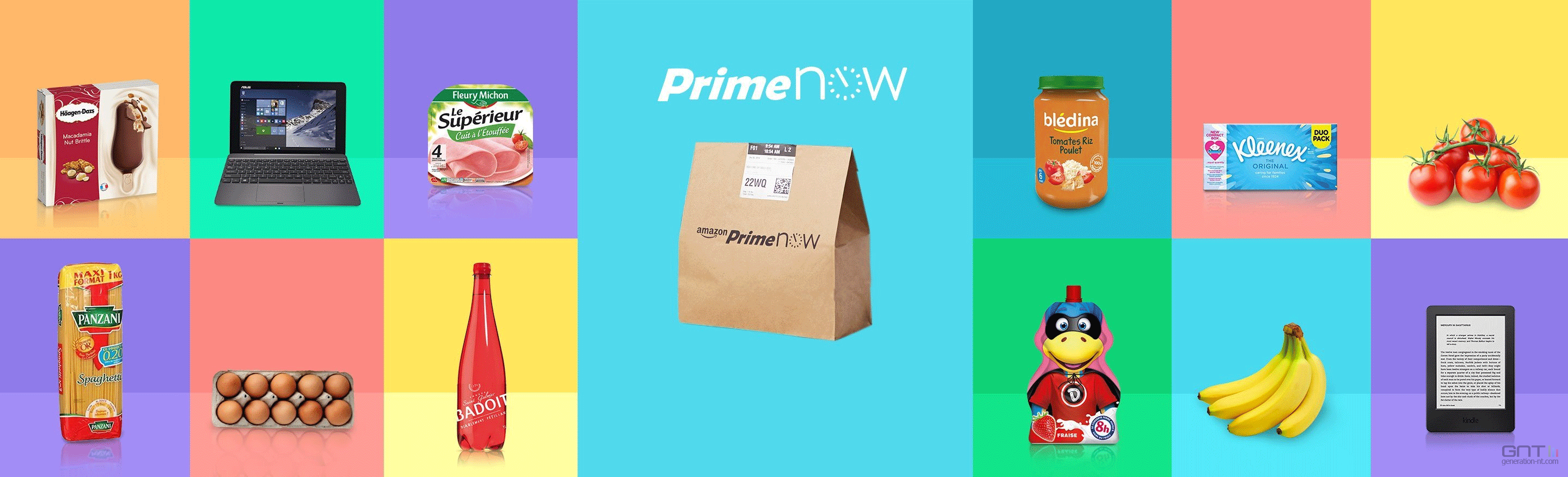L'offre couvre une large gamme de produits, incluant une sélection d'épicerie et de produits frais, ce qui positionne directement Amazon Now comme une alternative aux courses de dernière minute.