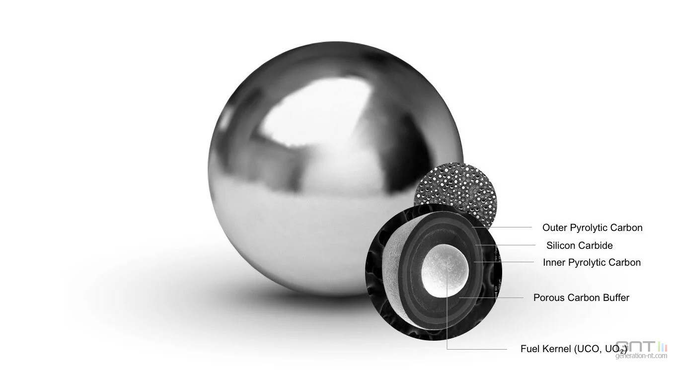 Chaque module, d'une puissance de 80 MW, utilise un combustible spécifique, le TRISO (Tri-Structural Isotropic, à base de particules d'uranium), encapsulé dans des "galets" de graphite.