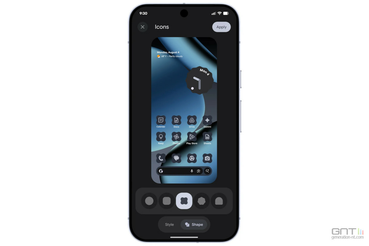 Android 16 QPR2 enrichit les options de personnalisation avec le choix des formes d'icônes pour l'écran d'accueil. De plus, les icônes à thème sont appliquées automatiquement à toutes les applications pour un rendu plus cohérent.