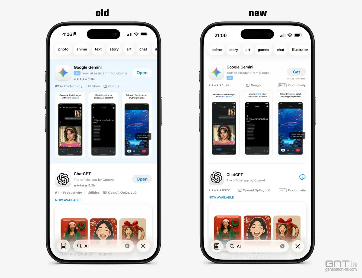 Cette suppression de la teinte bleue rend l'App Store visuellement plus uniforme, mais brouille la lecture des résultats afin d'identifier rapidement des publicités.
