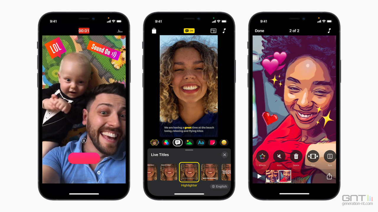 Pour un partage sur des plateformes, l'outil offrait une boîte à outils simple pour assembler des photos et des vidéos, en y ajoutant filtres, emojis et musiques. Par la suite, Apple a enrichi son application avec des fonctionnalités de réalité augmentée et des possibilités de montage plus poussées.