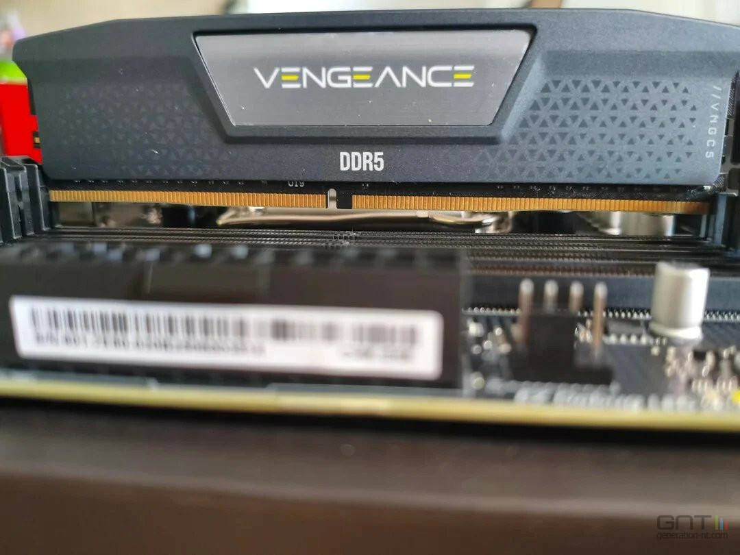 En retirant les dissipateurs, le verdict est tombé. Le circuit imprimé (PCB) correspondait sans aucun doute à de la DDR4. Un autre détail technique a confirmé la fraude : l'absence du PMIC (Power Management Integrated Circuit), un composant de gestion de l'alimentation qui est intégré directement sur les barrettes DDR5, mais qui se trouve sur la carte mère pour la DDR4. Il s'agissait donc bien d'une fausse DDR5.