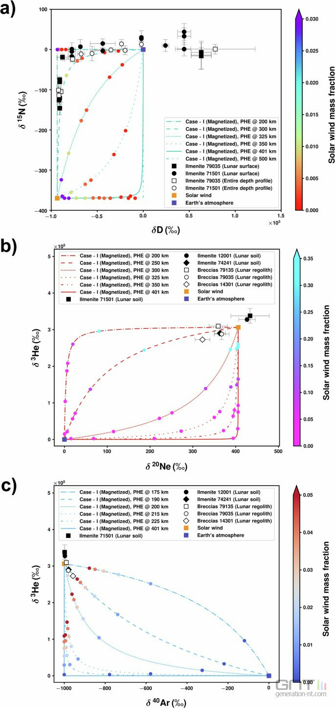 Ce modèle permet d'expliquer les concentrations observées pour la plupart des éléments volatils, comme l'azote, l'hélium ou l'argon. Seul l'hydrogène fait exception, ce qui suggère que son origine sur la Lune est principalement solaire ou extrasolaire. La présence de ces ions terrestres sur la Lune est donc une signature directe de l'interaction continue entre notre planète et son satellite naturel.
