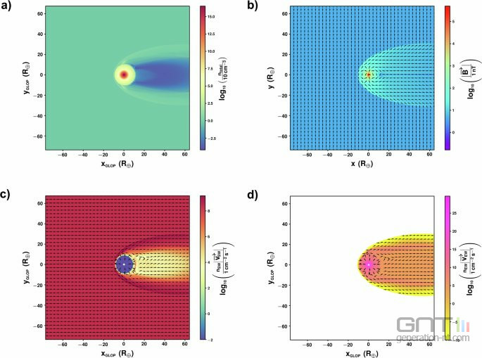 Le champ magnétique agit comme un bouclier pour les basses couches de l'atmosphère, mais sa structure s'étend très loin dans l'espace, formant une "magnétotail". C'est le long de cette queue que les ions de la très haute atmosphère sont canalisés et accélérés vers l'extérieur, certains finissant leur course sur la Lune.