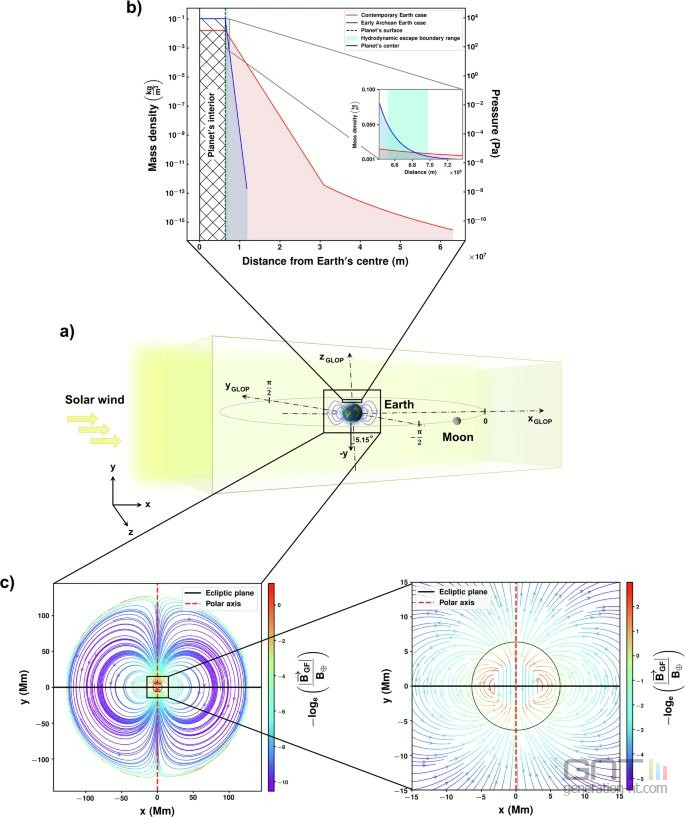 Pendant longtemps, la théorie dominante supposait que ce transfert ne pouvait se produire qu'avant la formation du champ magnétique terrestre, celui-ci étant perçu comme un bouclier protecteur. La nouvelle recherche démontre le contraire. Le mécanisme est direct : le vent solaire, un flux constant de particules, frappe la haute atmosphère de notre planète et en arrache des ions atmosphériques.