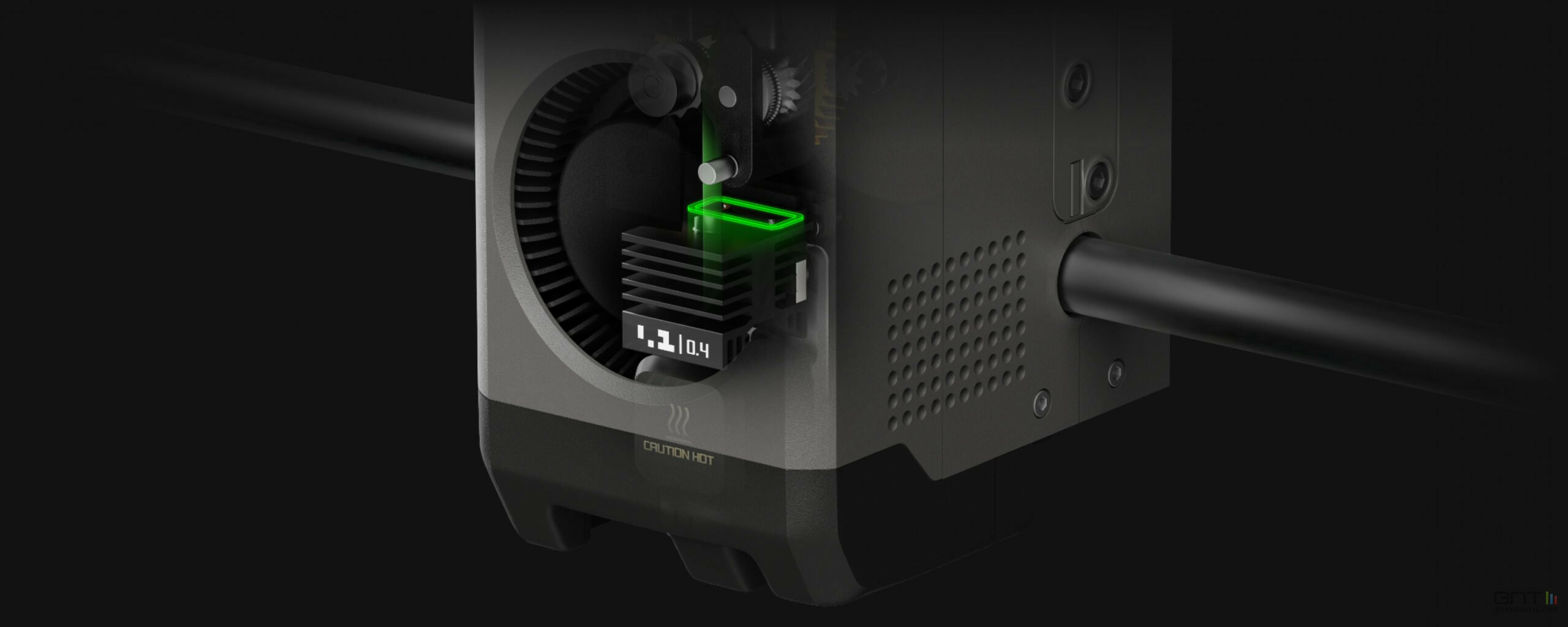 - Un extrudeur DynaSense plus puissant : Avec 70 % de force d'extrusion en plus, il assure un meilleur contrôle du filament, une vitesse d'impression accrue et une plus grande fiabilité.