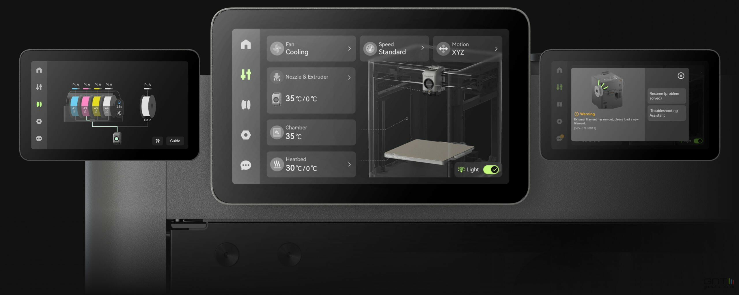 - Un écran tactile couleur de 5 pouces : Fini l'écran monochrome, la P2S adopte une interface moderne, plus claire et plus intuitive.