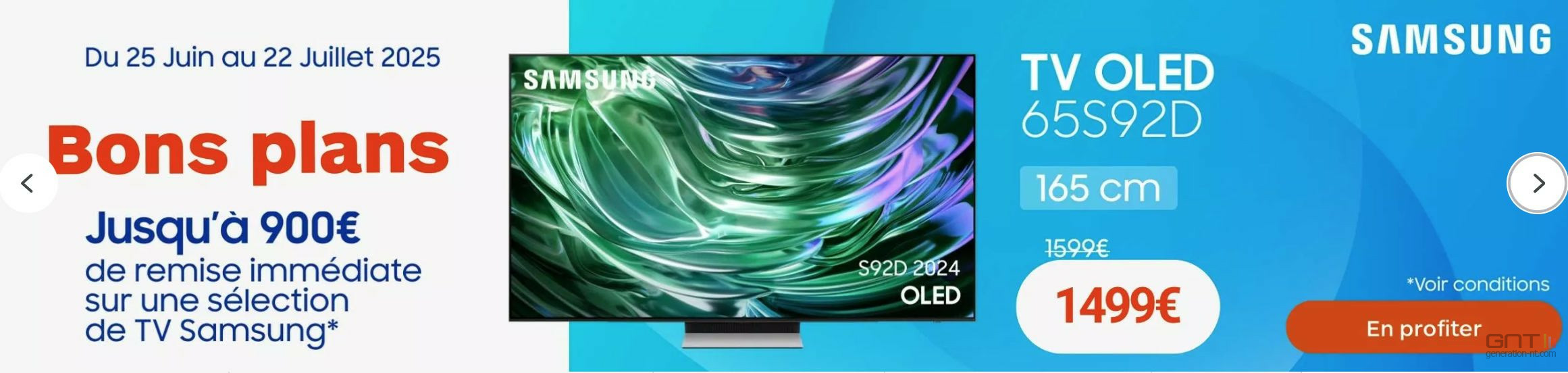 - TV QLED Samsung TQ65Q7F5 4K 2025 - 65" à 749 € (-17%)
