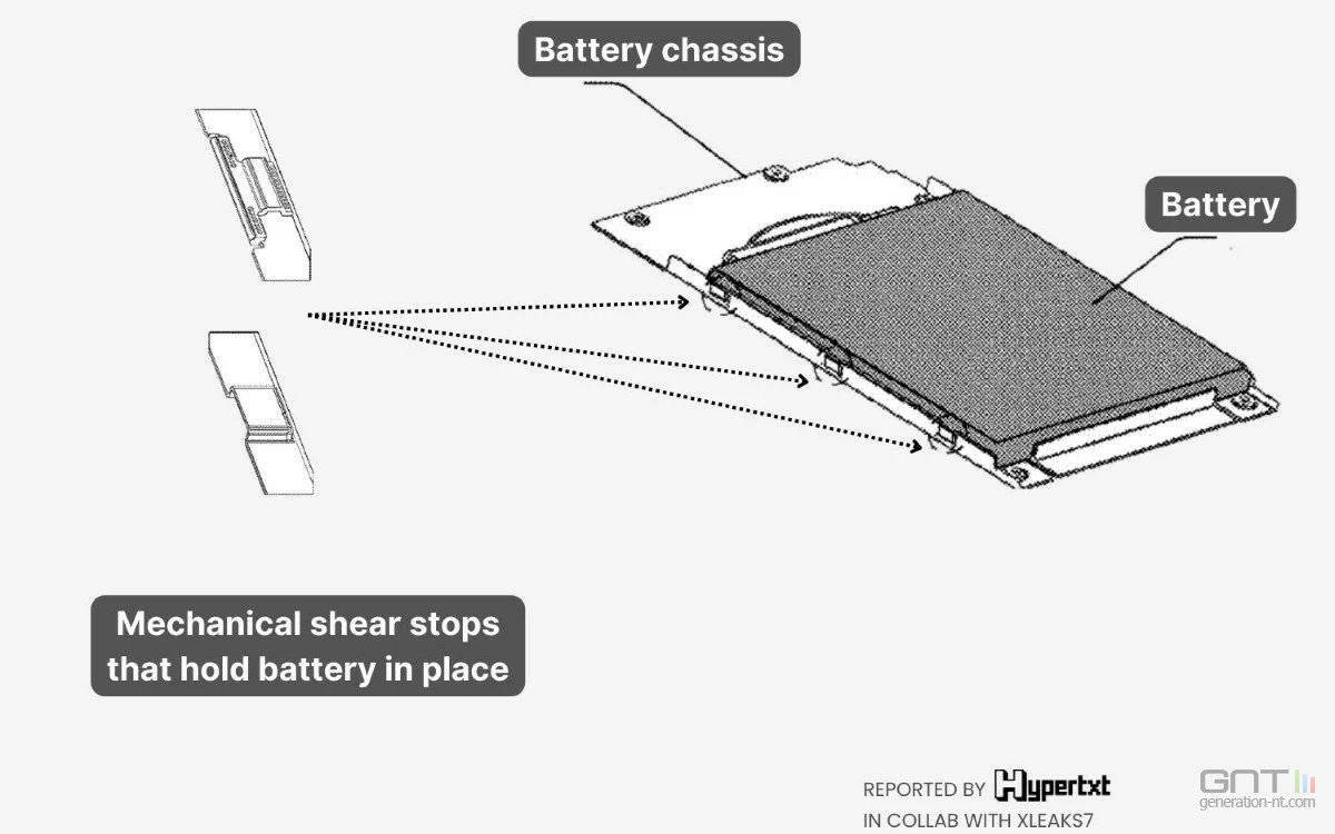 L'architecture décrite dans le brevet prend le contre-pied total de la logique industrielle actuelle. Au lieu d'une poche souple collée au châssis, la solution de Google repose sur une batterie encapsulée dans un cadre métallique rigide. Ce "squelette" a un double avantage : il protège le composant des perforations accidentelles et permet une fixation purement mécanique, sans une seule goutte d'adhésif.
