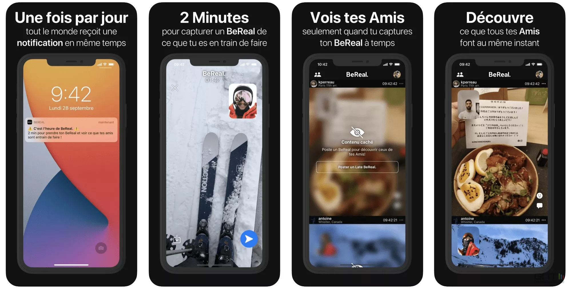 Créé en 2020 par deux Français (Alexis Barreyat et Kévin Perreau), BeReal a réussi l'exploit de se démarquer des géants Facebook, TikTok, Instagram et autres, notamment en misant sur le partage d'expériences plus proches de la vie réelle.
