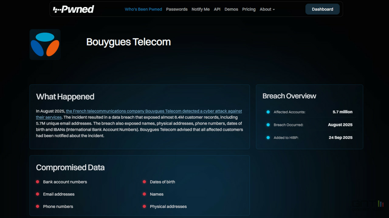 Le site Have I Been Pwned (HIBP) a récemment ajouté la fuite de Bouygues Telecom à sa base de données, en rappelant que l'identifiant international de compte bancaire IBAN a aussi pu être compromis. De quoi donner du grain à moudre aux tentatives de phishing… ou plutôt de smishing.