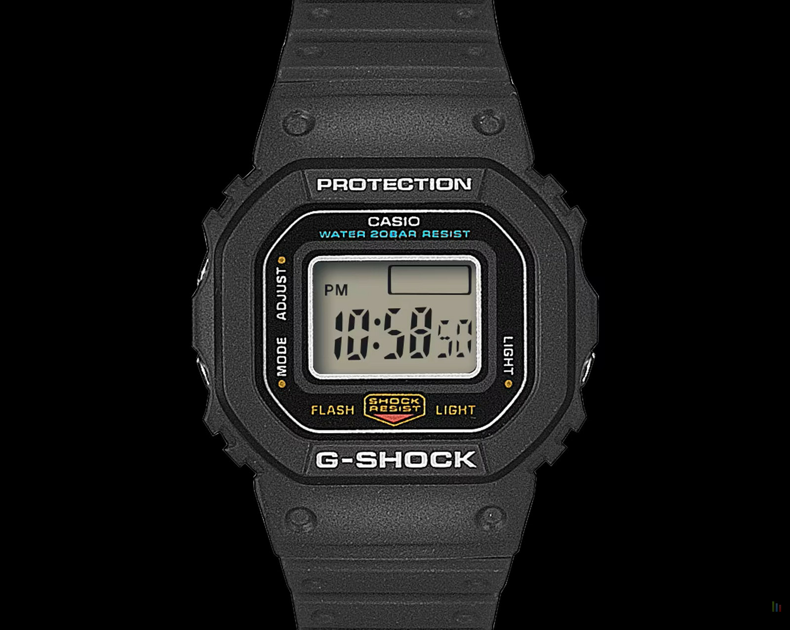 Casio mise sur la fidélité visuelle de sa création. Le design carré distinctif, signature de la série 5600, est ici reproduit avec un soin extrême grâce au moulage par injection de précision.