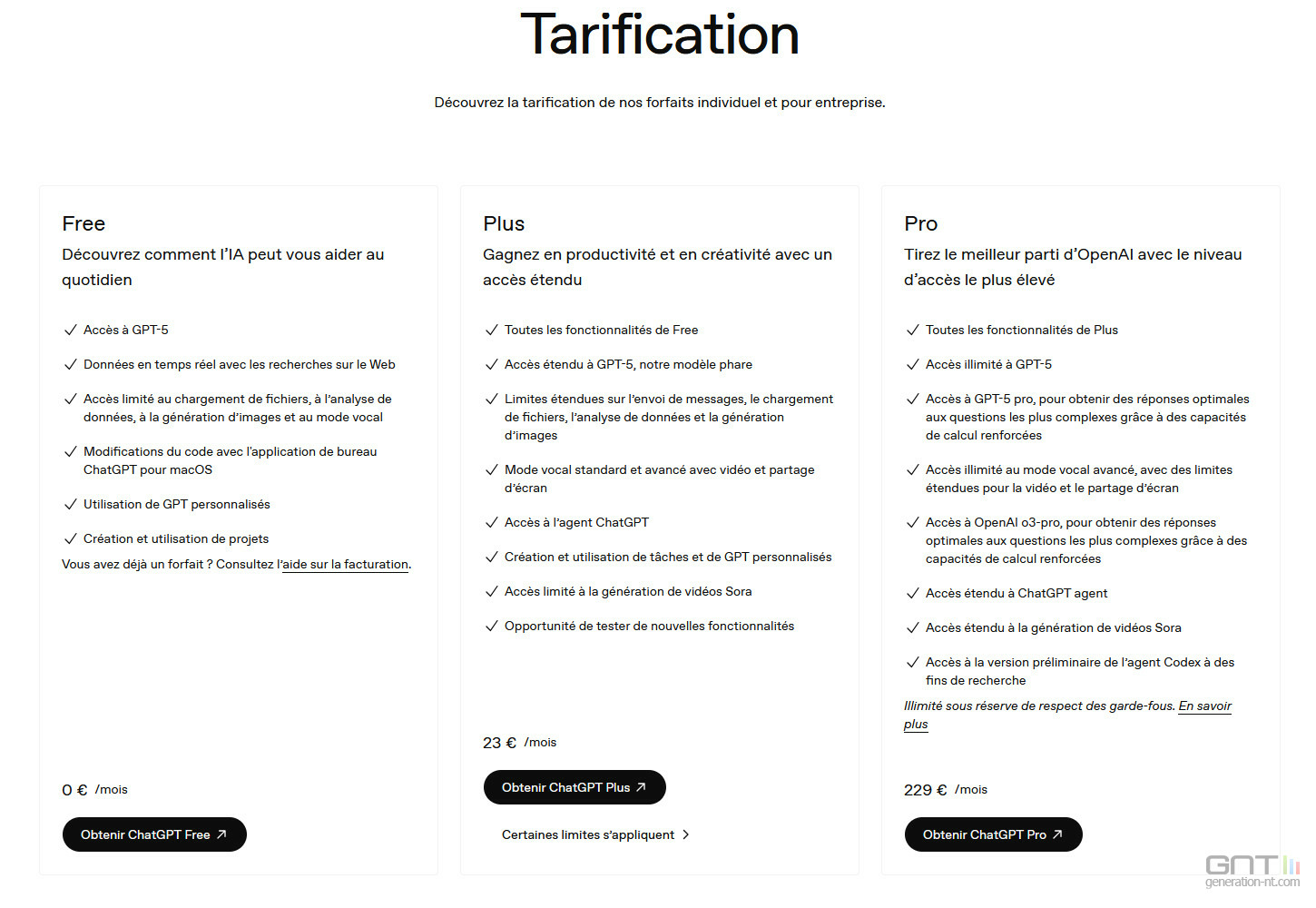 L'offre comprend aussi des outils pour l'analyse de données avancée, ainsi que la possibilité de créer ses propres GPTs personnalisés.