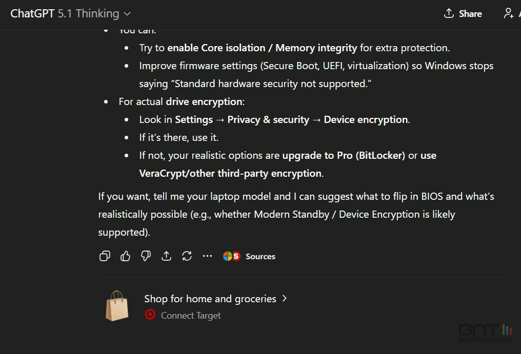 Tout a commencé avec des captures d'écran partagées sur les réseaux sociaux, notamment par un ancien employé de xAI. Une image montrait une suggestion pour " faire ses courses chez Target " en réponse à une question technique sur BitLocker, un sujet sans aucun rapport (capture ci-dessous ; @BenjaminDEKR).
