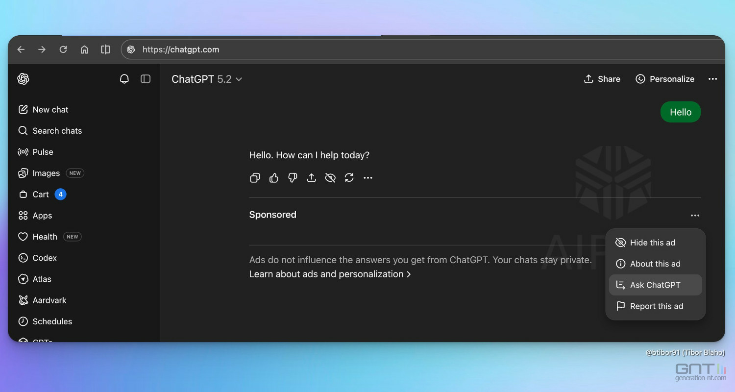 La pertinence des annonces pourra être influencée par la conversation en cours, mais OpenAI précise que les données personnelles ne sont pas partagées avec les annonceurs.