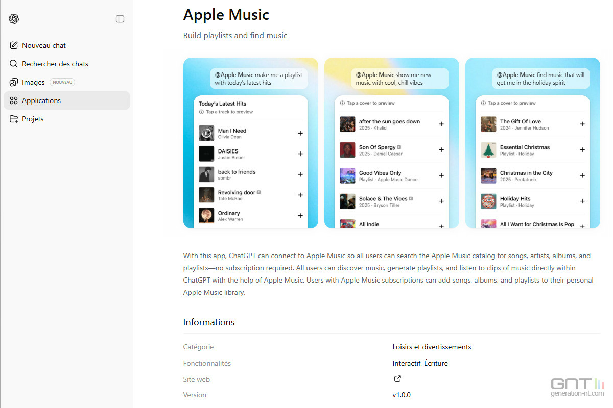 Des applications de premier plan, comme Apple Music, rejoignent des services déjà existants tels que Spotify, dont la disponibilité est étendue à l'Europe. L'expérience est actuellement en version bêta.