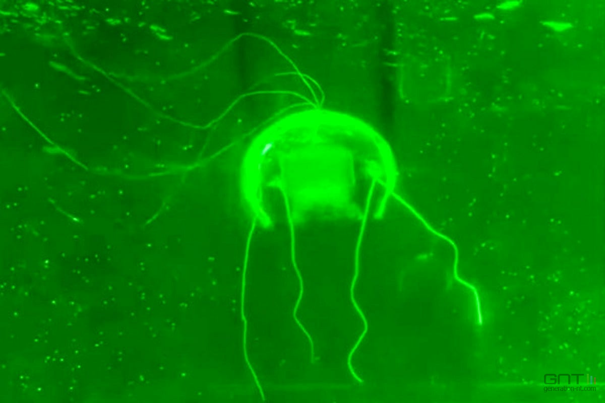 Il s'agit d'un robot compact de 120 mm de diamètre et pesant à peine 56 grammes. Son corps transparent et ses tentacules sont fabriqués à partir d'un matériau d'électrode en hydrogel spécial, imitant parfaitement l'apparence et la texture d'une vraie méduse. L'illusion est telle qu'il est "quasi-indétectable" une fois submergé.