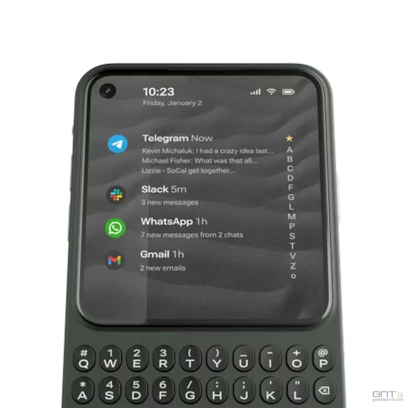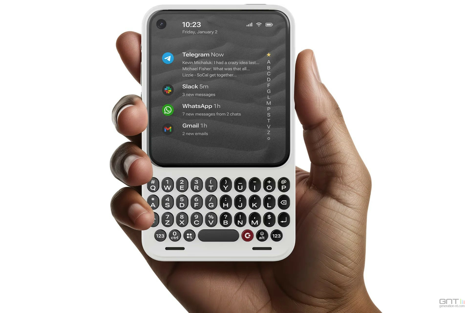 Le design trahit immédiatement ses influences BlackBerry avec un écran OLED presque carré de 4 pouces (1200x1080 pixels) surplombant un clavier physique de type QWERTY. Loin d'être un simple gadget, ce dernier intègre des touches sensibles au toucher et un capteur d'empreintes digitales dans la barre d'espace.
