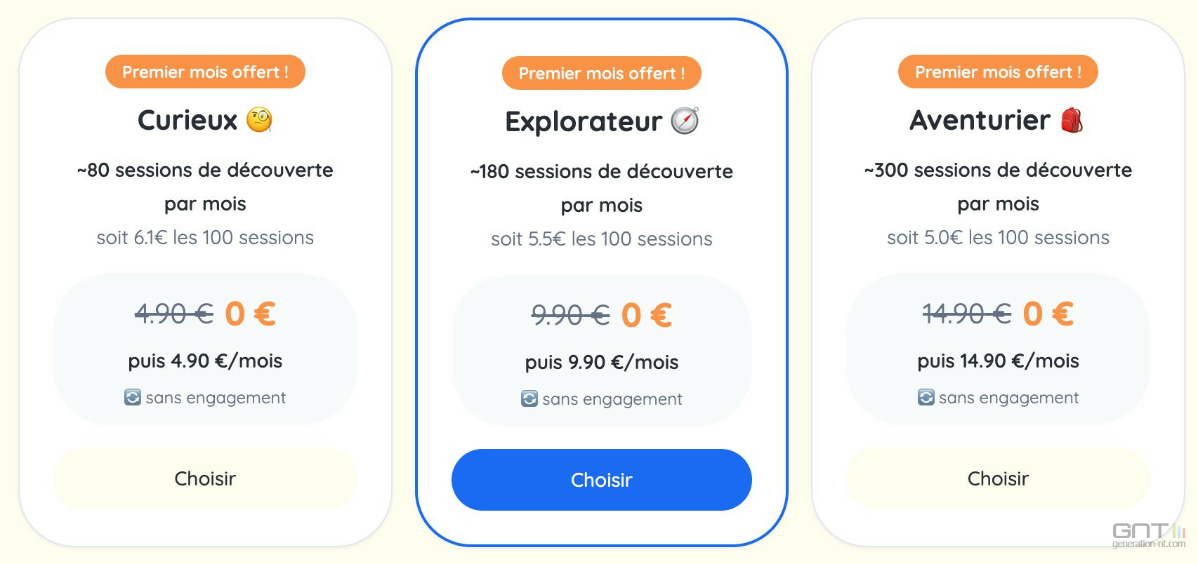 La startup a donc mis en place un système "à l'ancienne" de packs et d'abonnements. Cela va de 4,90 € pour 80 sessions par mois à des packs de 1000 sessions pour 72 €.