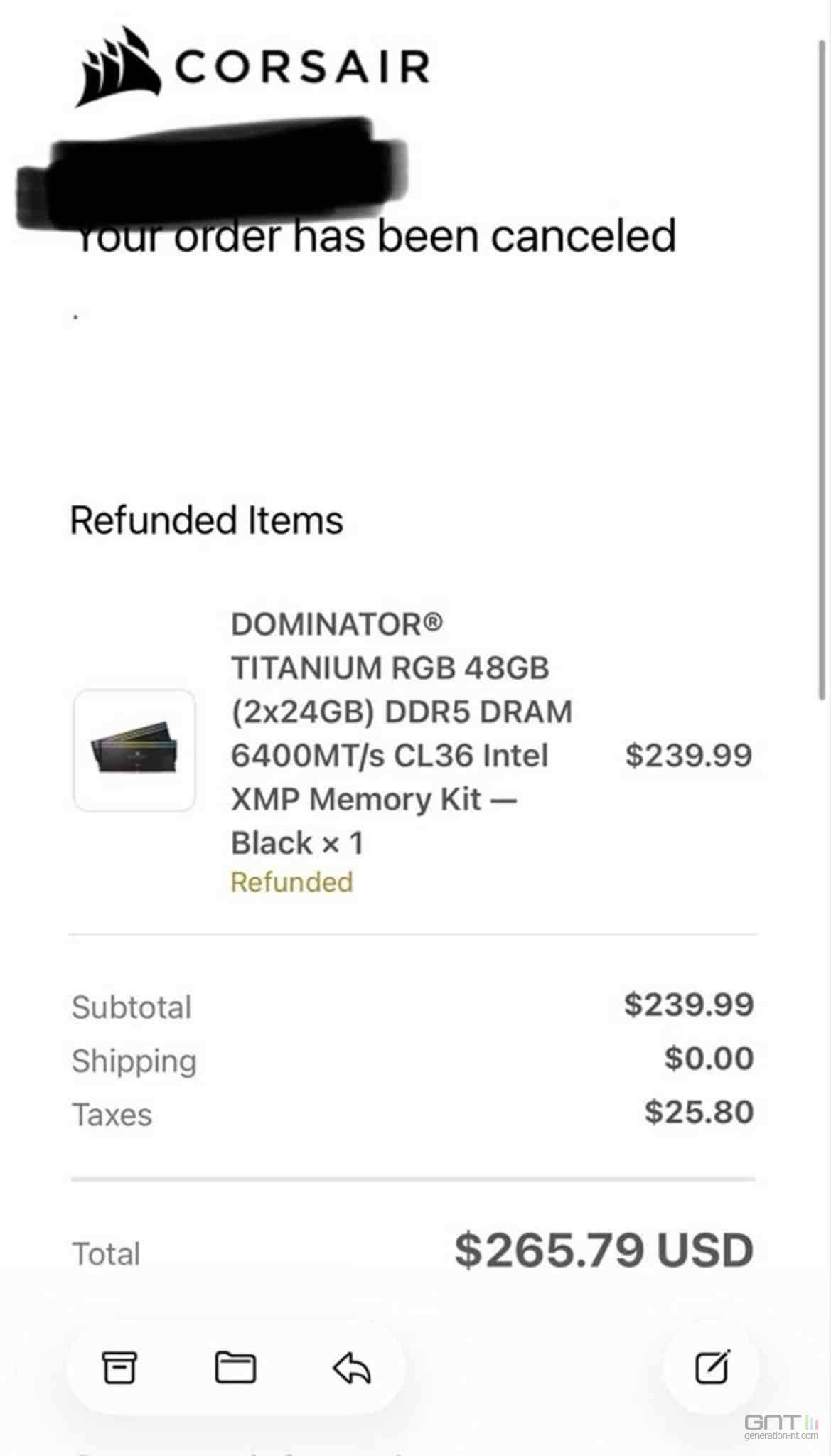 Quelques heures plus tard, une seconde affaire éclate. Un kit de mémoire DDR5 Dominator Titanium de 48 Go est listé sur la boutique officielle à 239,99 dollars, une offre particulièrement attractive, voire irréaliste. De nombreux acheteurs sautent sur l'occasion, mais leurs commandes sont massivement annulées. La raison invoquée : une simple erreur de prix, le produit n'ayant jamais été réellement en stock.