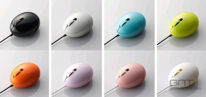 En forme d'œuf et proposée en huit finitions blanche, bleue, grise, noire, orange, rose ( 2 types ) et verte, il s'agit d'une souris filaire branchée en USB via un câble de 80 centimètres de long.