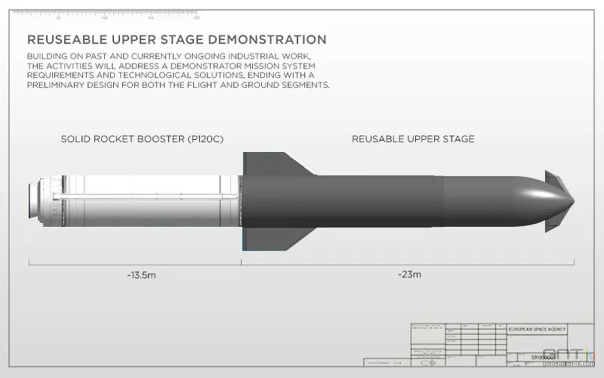 Le design présenté par l’ESA évoque clairement Starship : étage supérieur aérodynamique, volets de retour atmosphérique et montage sur propulseur Vega, dans une optique de modularité et d'optimisation des coûts de vol.