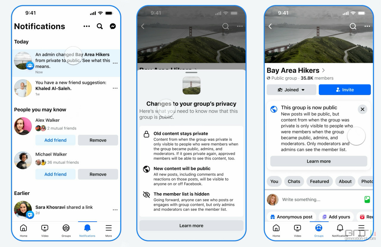 Meta annonce une mise à jour pour Facebook et les groupes. Elle permet aux administrateurs de groupes privés de basculer le statut en public. La nouvelle option doit faciliter la croissance des groupes sans avoir à repartir de zéro, tout en garantissant la confidentialité des échanges passés.