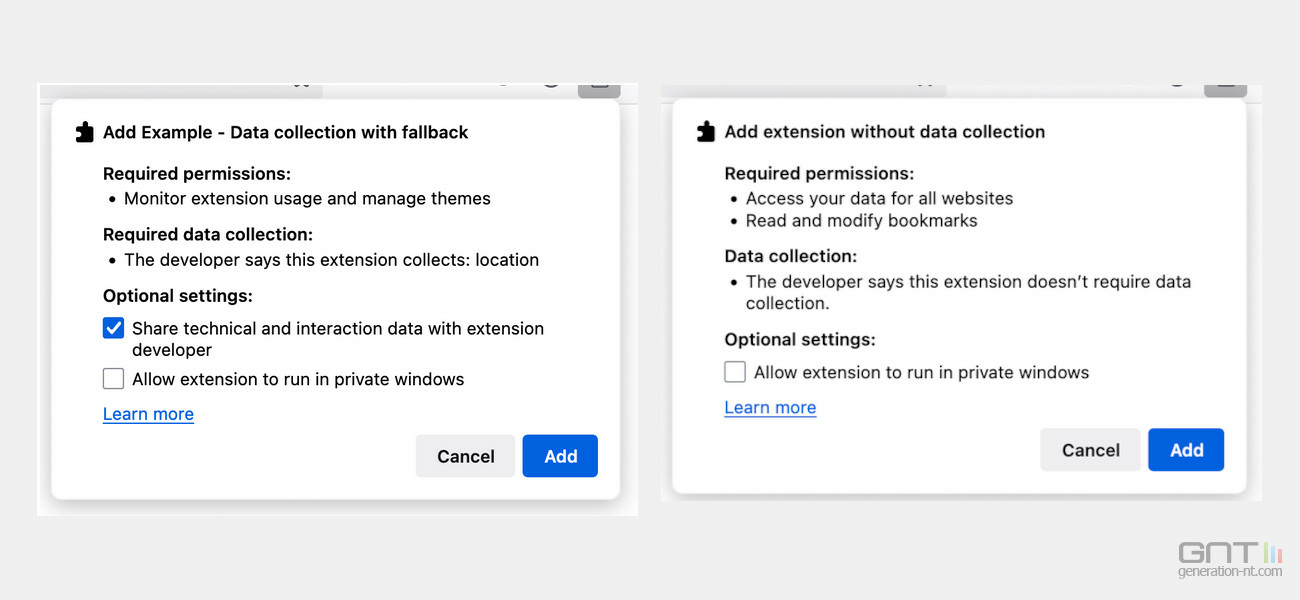 Le mécanisme repose sur le fichier manifeste de l'extension. Les développeurs devront utiliser une clé spécifique dans le fichier manifest.json. L'information sera ensuite analysée par Firefox et montrée à l'utilisateur lors de la première installation.