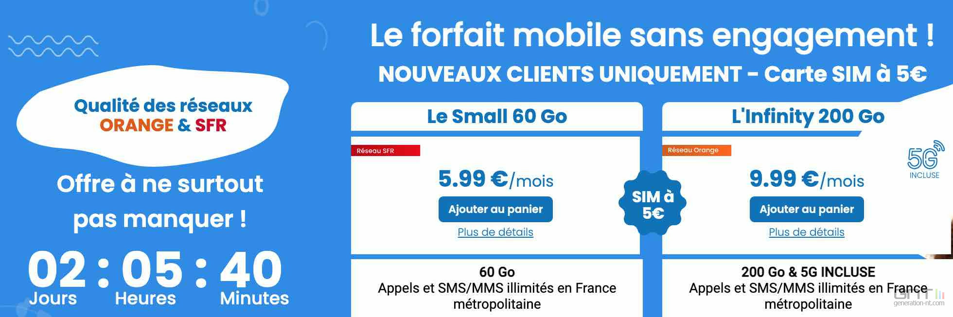 Et en ce moment, l'opérateur virtuel propose deux autres forfaits également à moins de 10 € et avec la carte SIM à 5 € :