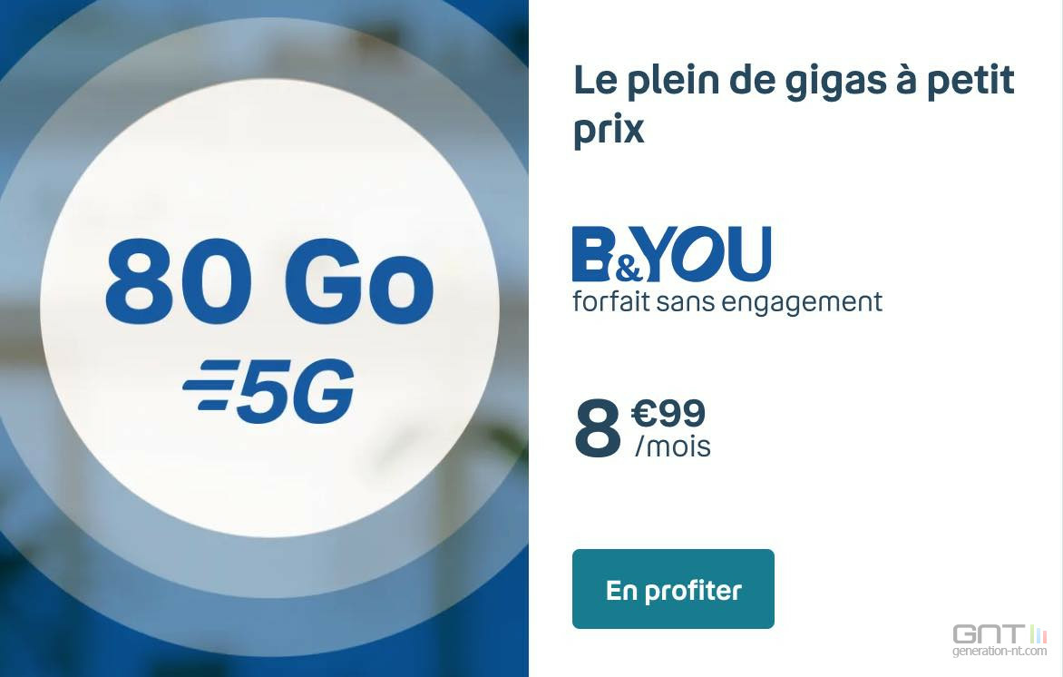 ⚡️Découvrir le forfait B&You 80 Go 5G à 8,99 €/mois⚡️