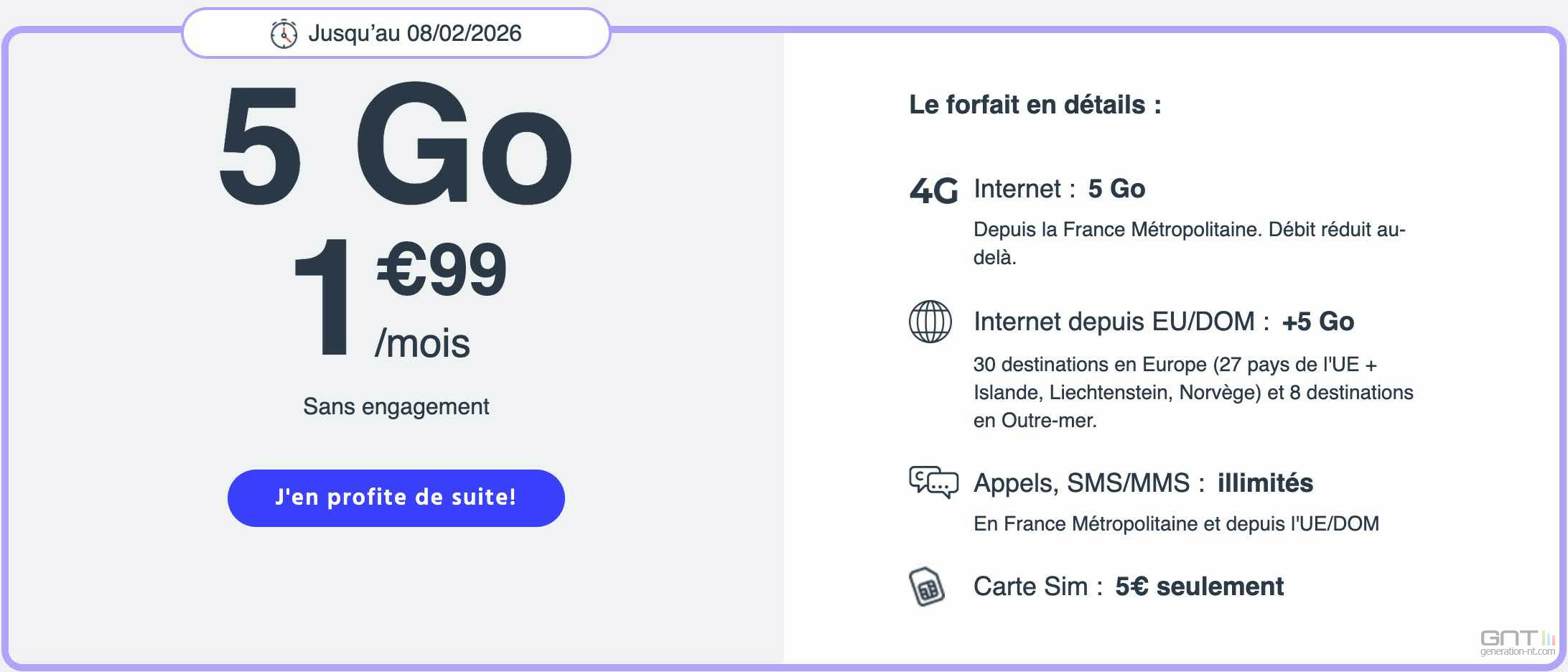 ➡️ Carte SIM : seulement 5 € à la commande (contre 10 € habituellement).