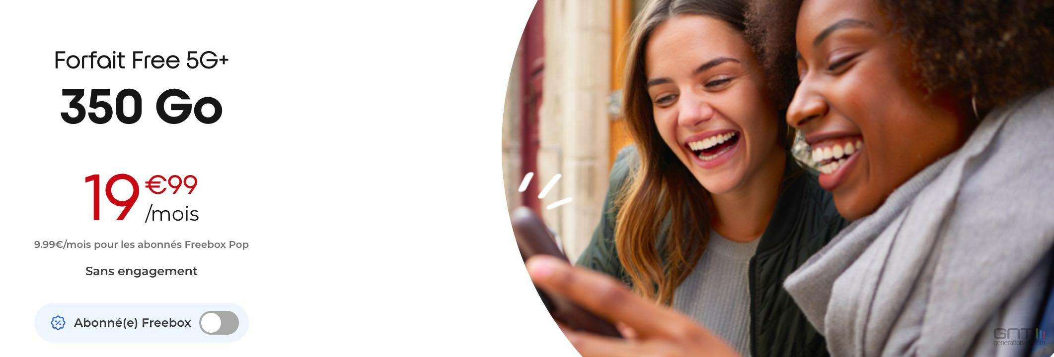 Après un an, votre forfait évolue automatiquement vers le forfait Free 5G+, qui est l'offre la plus complète à 19,99 € par mois (ou seulement 9,99 € pour les abonnés Freebox Pop). Les avantages explosent :