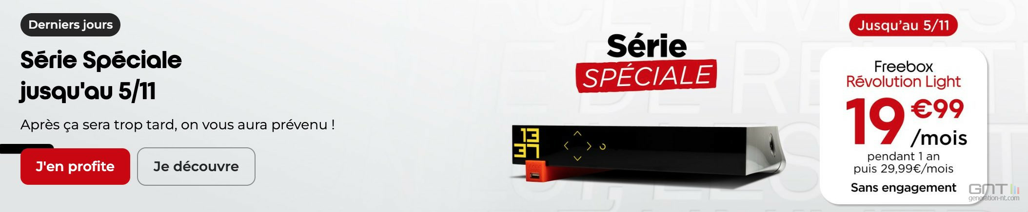 Un bandeau sur le site officiel de Free l'annonce sans détour : la Série Spéciale Freebox Révolution Light, proposée à un tarif défiant toute concurrence de 19,99 € par mois pendant un an, prendra fin le 5 novembre. Une aubaine pour ceux qui cherchent la fibre optique à petit prix, mais pour combien de temps encore ?