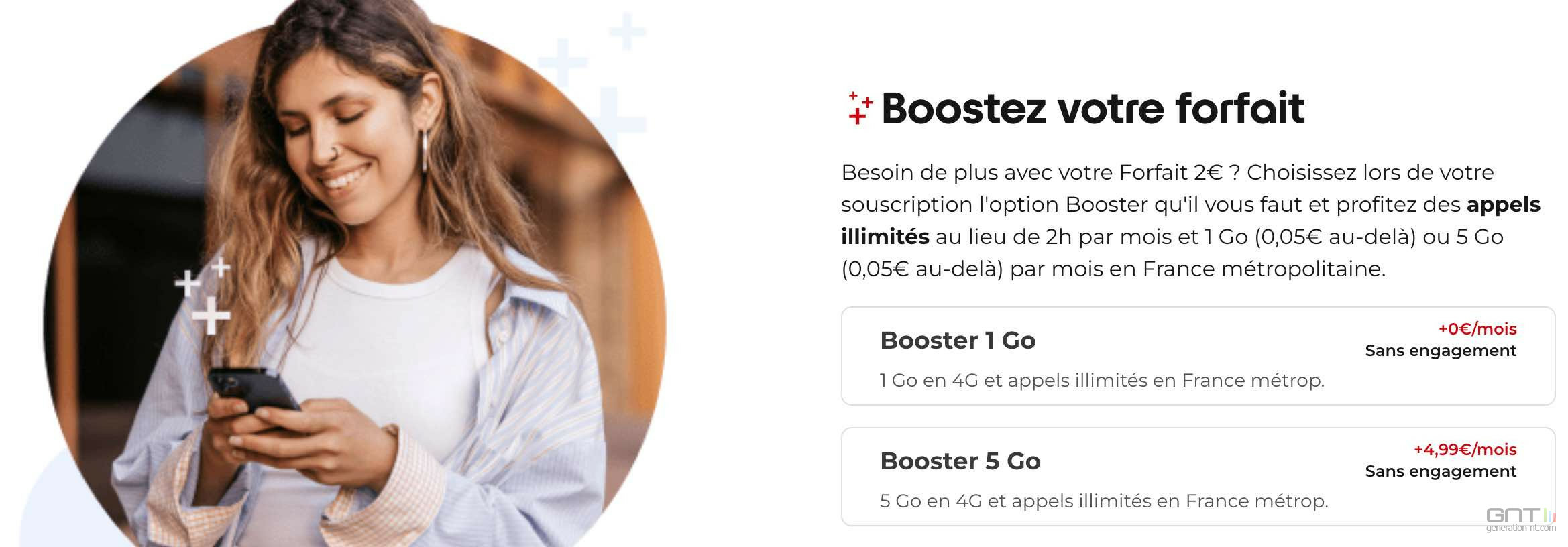 La nouveauté majeure réside dans l'ergonomie du site : l'option « Booster 1 Go » est maintenant cochée par défaut lors de la souscription. Concrètement, cela signifie que les nouveaux clients bénéficient automatiquement des appels, SMS et MMS illimités ainsi que d'une enveloppe de 1 Go de data en 4G. Le plus intéressant est que cette option est proposée gratuitement.