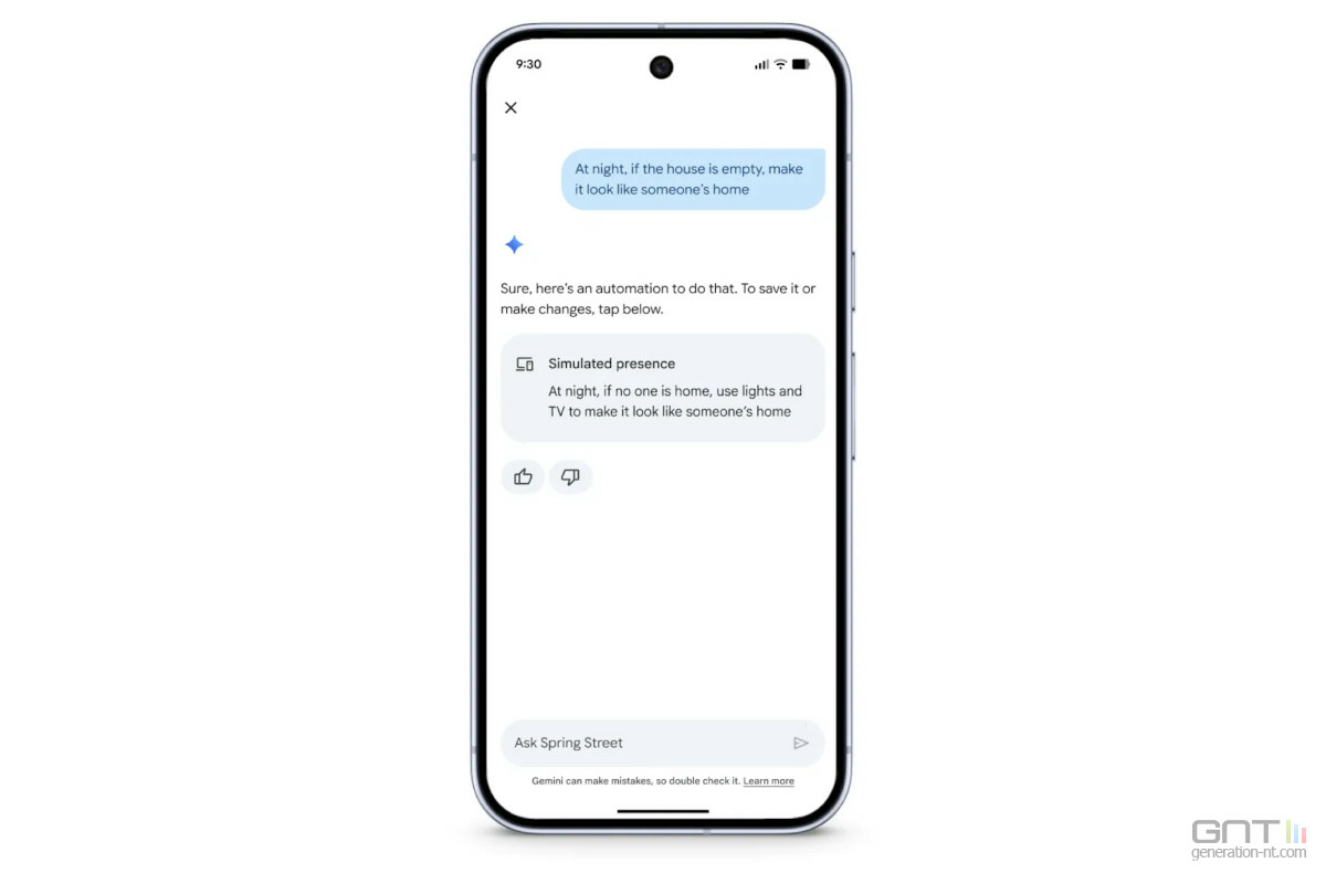 Cet abonnement débloque des fonctions comme Gemini Live pour des conversations continues sans avoir à répéter le mot-clé d'activation, les notifications IA détaillées pour les caméras, la recherche en langage naturel dans l'historique vidéo ou encore la création d'automatisations via Ask Home.