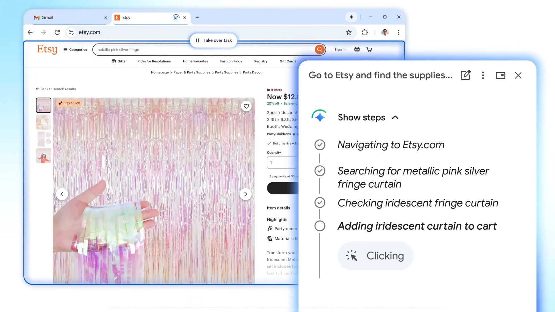 L'agent IA peut s'inspirer d'une image pour trouver des articles similaires sur un site d'e-commerce, les ajouter au panier et appliquer des codes de réduction. L'interface tire parti du nouveau panneau latéral consacré à Gemini, afin de le garder à portée de main quel que soit l'onglet actif.