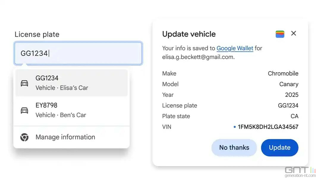 Mais ça va plus loin. Lors de la réservation d'un vol ou d'une location de voiture, le navigateur pourra pré-remplir les détails du voyage, comme le numéro de confirmation, directement depuis votre portefeuille. Même les informations de votre véhicule (numéro de série, plaque d'immatriculation) pourront être ajoutées pour des devis d'assurance ou des démarches administratives. C'est une centralisation massive d'informations pratiques.