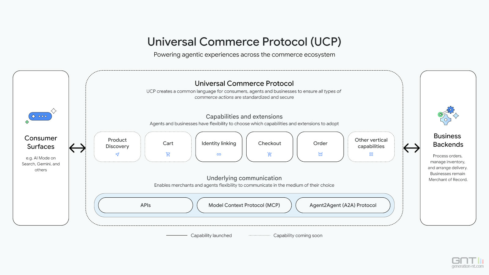 Dans un contexte de montée en puissance du commerce piloté par l'intelligence artificielle, Google dévoile l'Universal Commerce Protocol (UCP). Il a pour vocation de standardiser les interactions entre les agents IA, les consommateurs et les plateformes de vente.