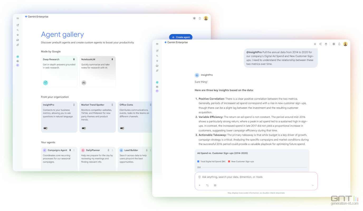 Gemini Enterprise est une plateforme distincte de Google Workspace, même si elle peut se connecter à ses données, ainsi qu'à celles de Microsoft 365, Salesforce ou SAP.