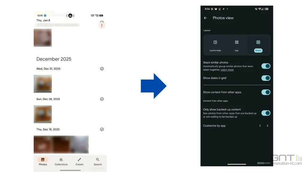 Une nouvelle option permettra de masquer les dates de la grille de photos. L'objectif est clair : proposer un affichage continu, plus visuel et immersif, pour tous les utilisateurs qui privilégient l'esthétique pure à une organisation temporelle stricte. Le défilement devient alors une expérience bien plus homogène.