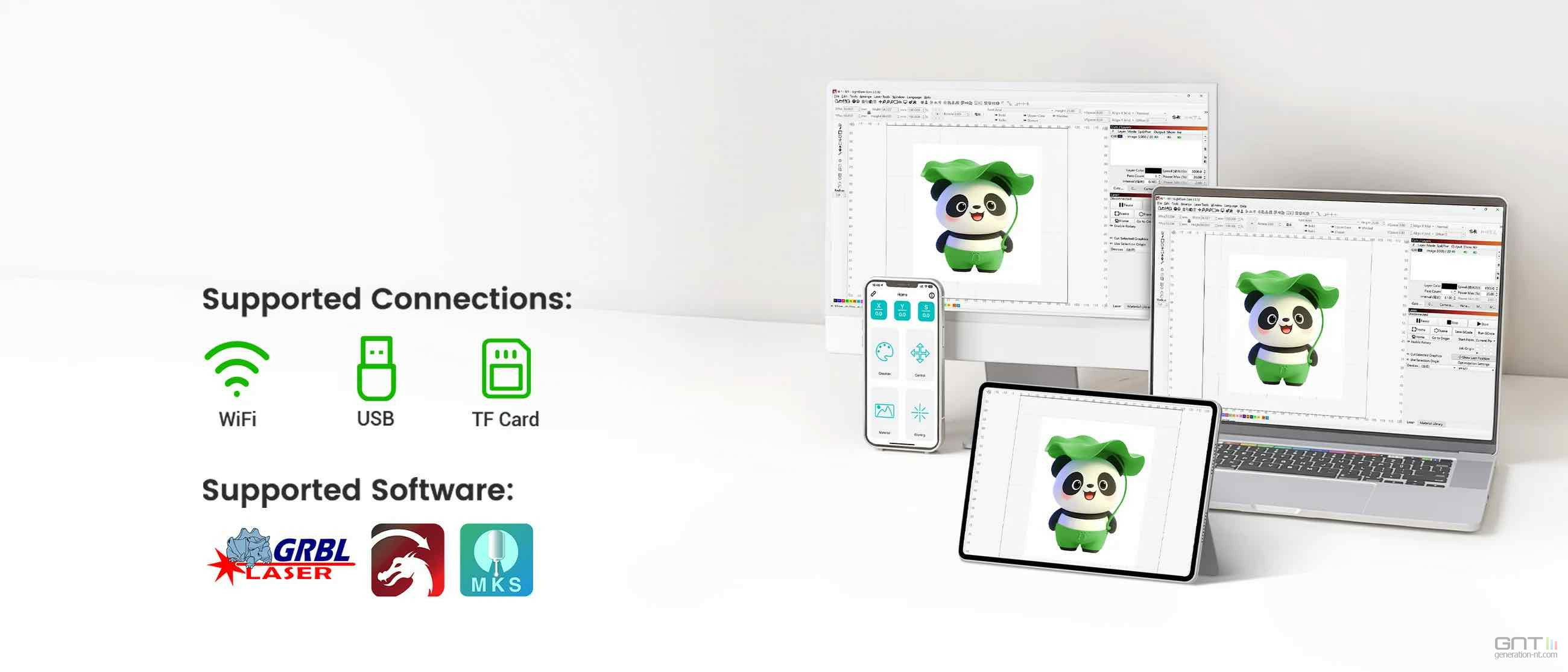 - Logiciels de référence : il est compatible avec les logiciels plébiscités comme Lightburn et LaserGRBL, ainsi qu'avec CutLabX, vous offrant une flexibilité maximale.