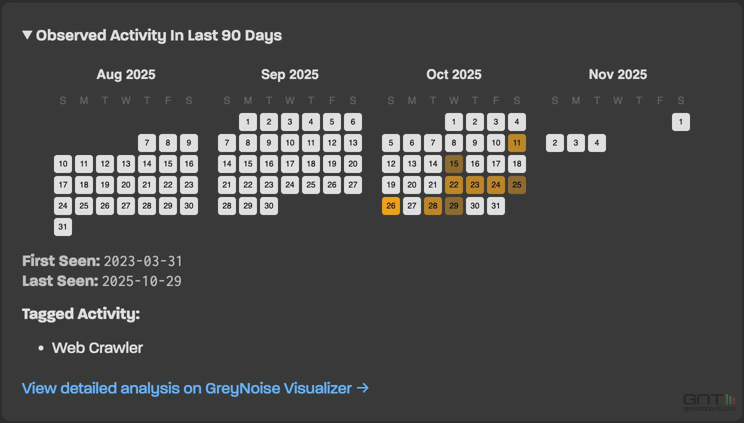 Non, GreyNoise IP Check identifie uniquement que l'adresse IP publique de votre réseau a été impliquée dans des activités suspectes. Il ne peut pas déterminer quel appareil spécifique est à l'origine du problème. L'historique de 90 jours est cependant une aide précieuse pour mener votre propre enquête.