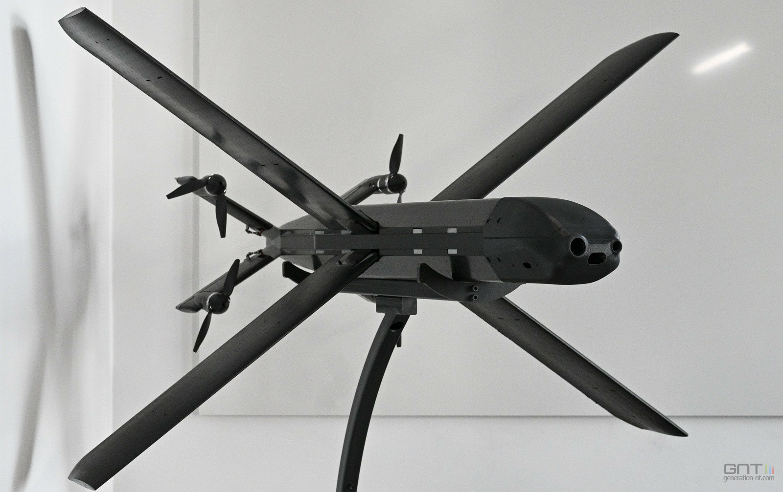 Son drone HX-2, un modèle « X-wing » combinant ailes fixes et rotors de quadricoptère, était présenté comme la réponse technologique du continent aux munitions téléopérées russes de type Lancet.
