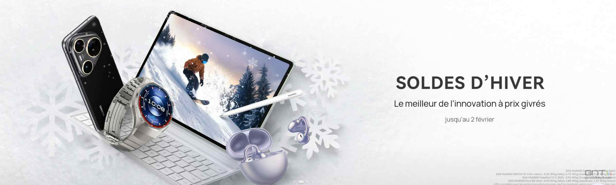 Les soldes d'hiver sont déjà là ! Du 5 janvier au 2 février, Huawei lance une campagne de promotions massives sur l'ensemble de son catalogue. Entre remises immédiates et cadeaux offerts (montres, écouteurs, accessoires), c'est le moment idéal pour s'équiper.