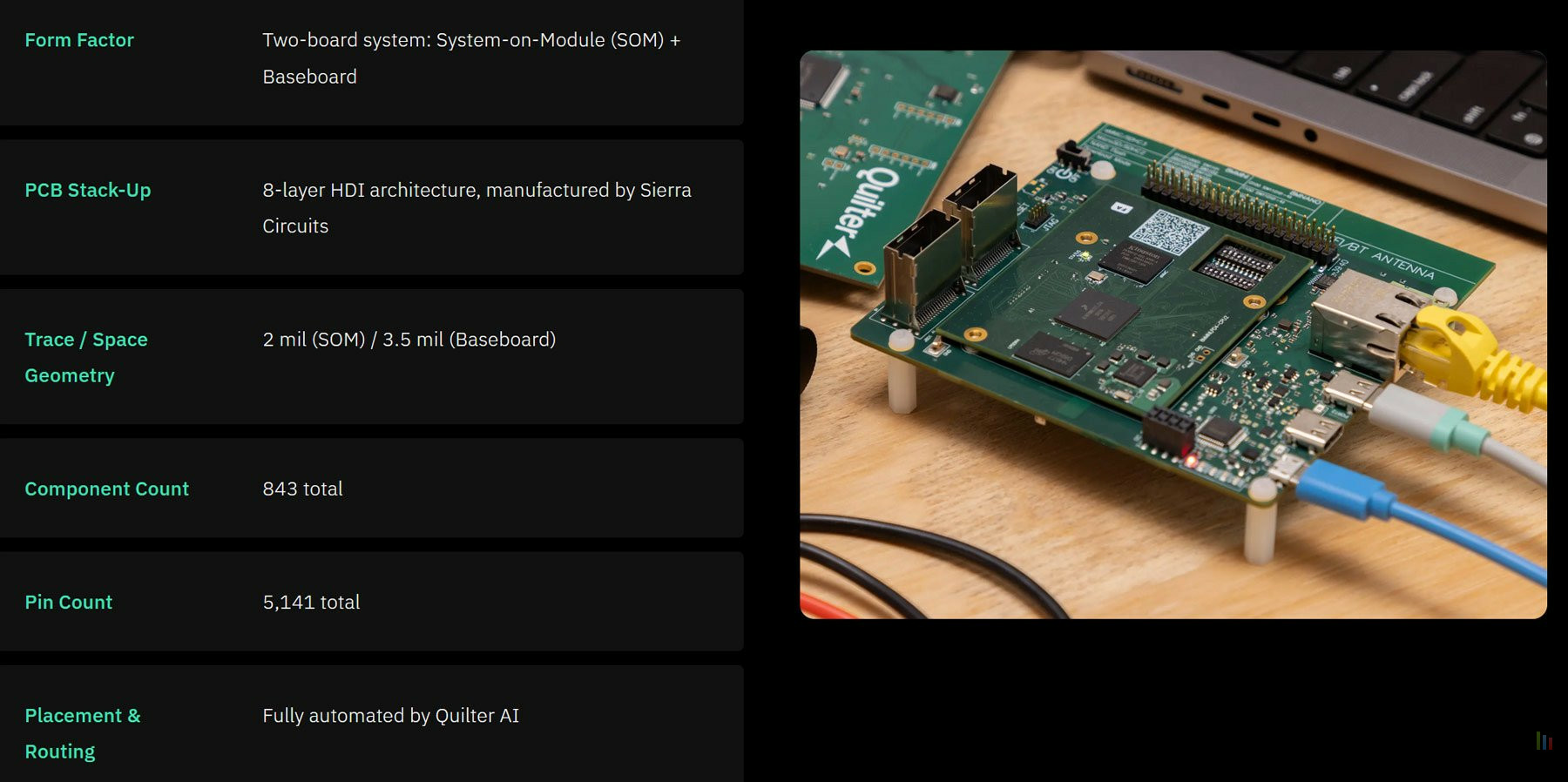 C'est le nom du projet de démonstration mené par la startup Quilter. L'objectif était de prouver que son intelligence artificielle pouvait concevoir un ordinateur fonctionnel, un système double-PCB de 843 composants, en une semaine. Le projet a été un succès total, l'ordinateur ayant démarré le système d'exploitation Debian dès le premier allumage.