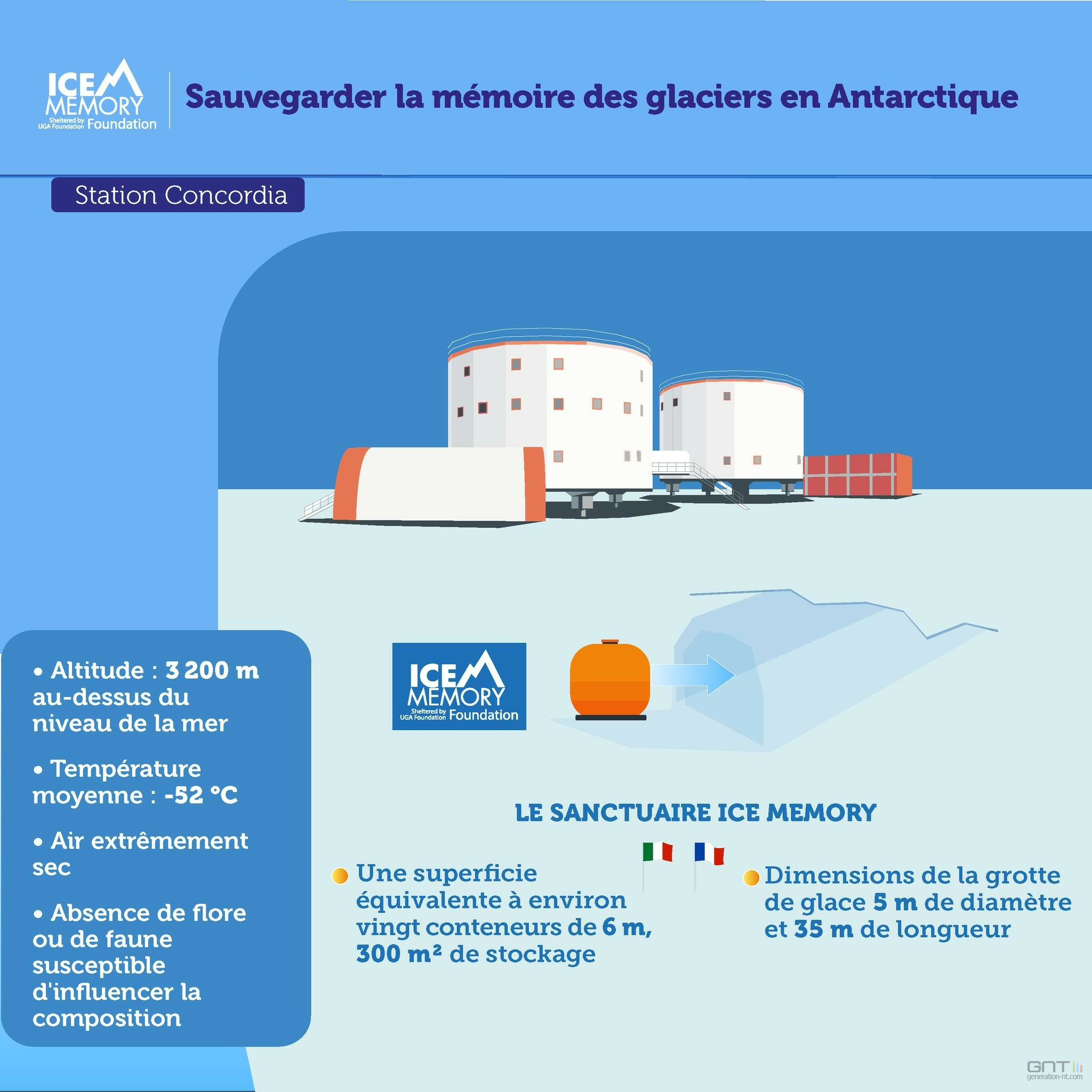 Le choix de l'Antarctique s'imposait de façon logique. Le sanctuaire est une grotte de 35 mètres de long creusée à 5 mètres sous la surface, près de la station Concordia. À 3 200 mètres d'altitude, la température y est naturellement stable, à -52°C. Cette condition extrême garantit une conservation sur le très long terme, sans assistance technique ni réfrigération artificielle, une solution à la fois pérenne et écologique.